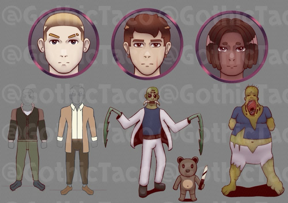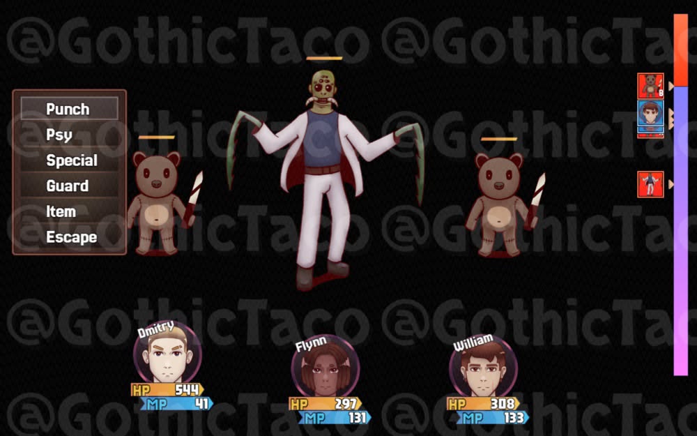 Hello. I'm GothicTaco. I'm a creature designer and game developer. In this post I am announcing my first-ever commercial game: An RPG Maker horror adventure where you play as test subjects with psychic powers, trying to escape a laboratory filled with monsters.